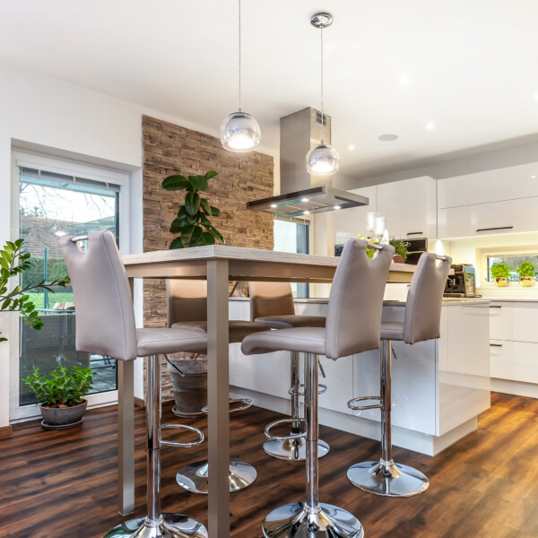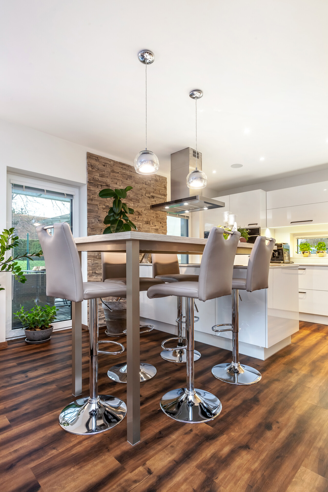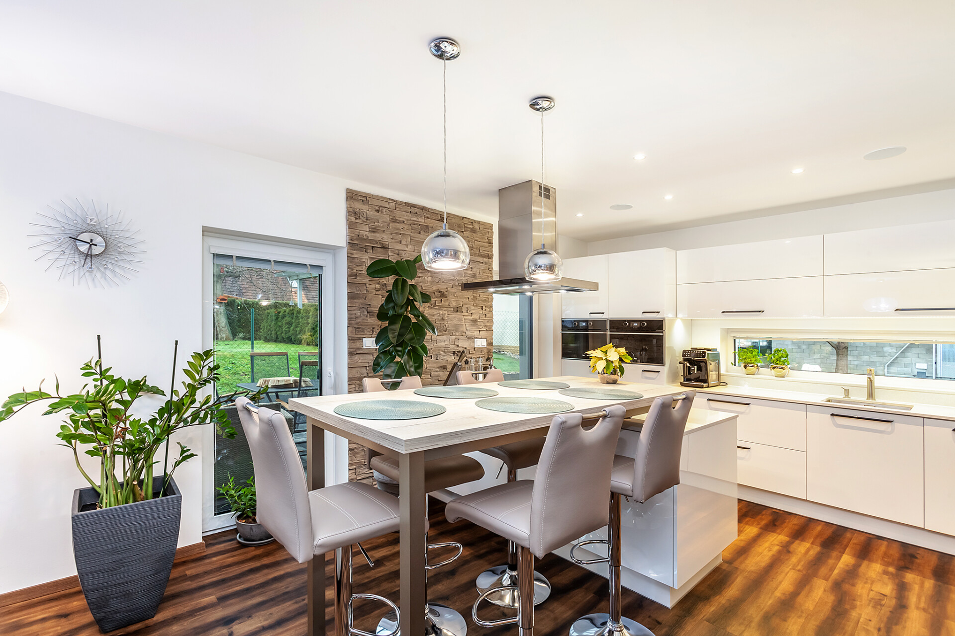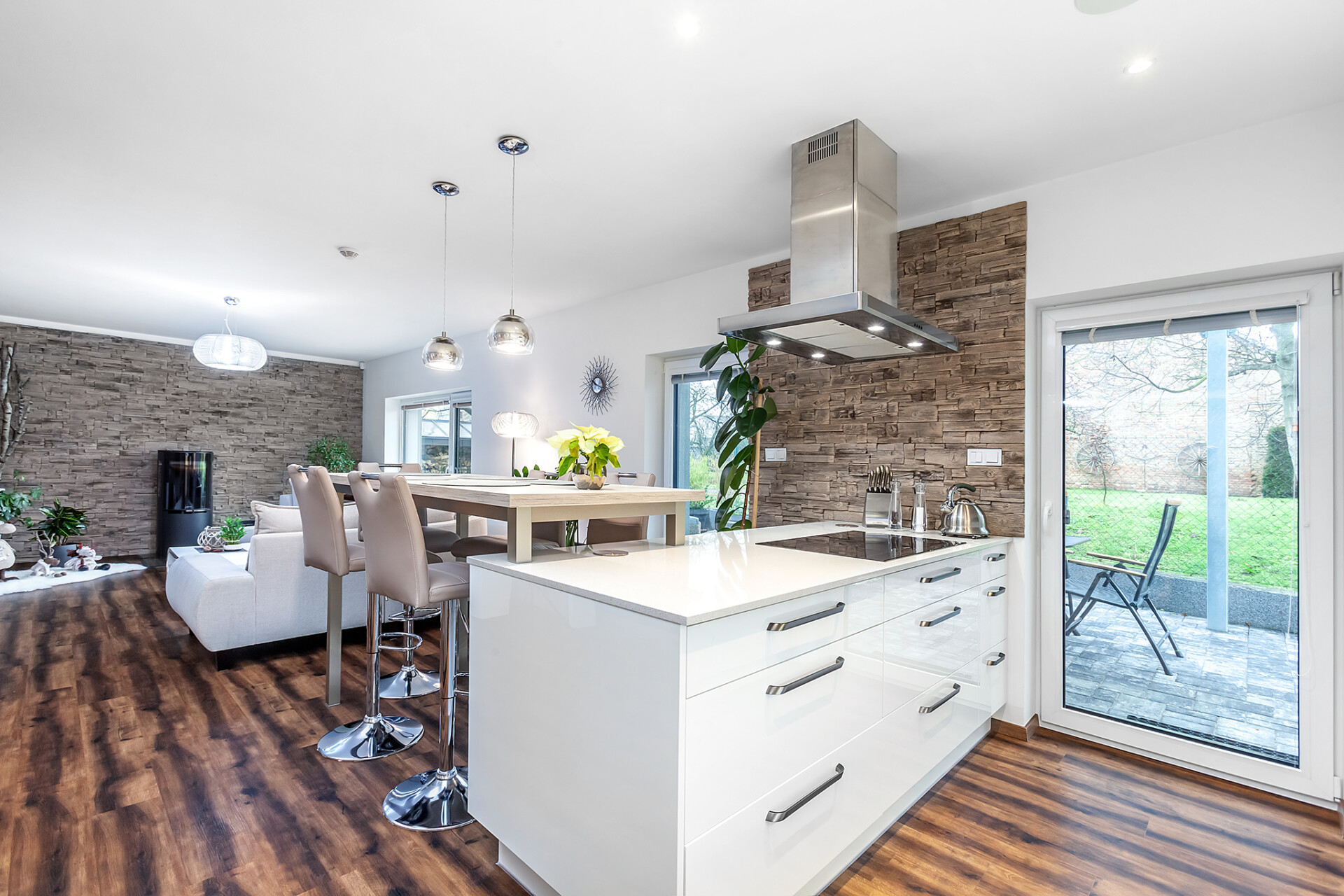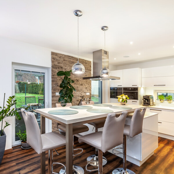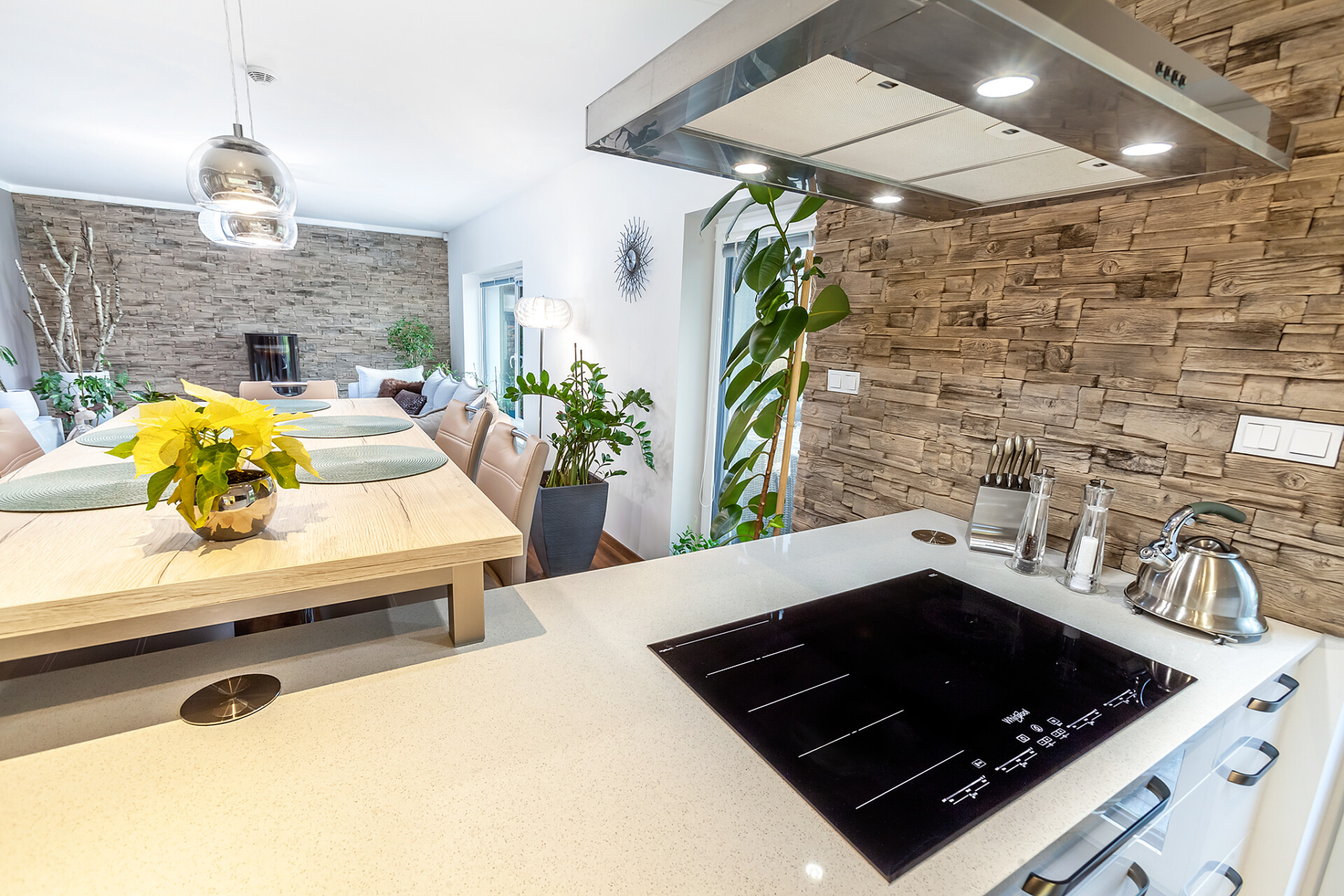 Bílá lesklá kuchyň s pracovní deskou Technistone