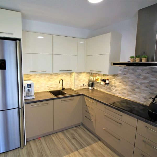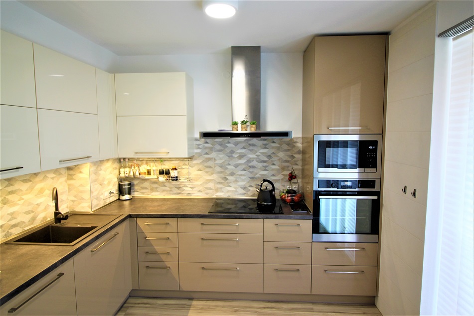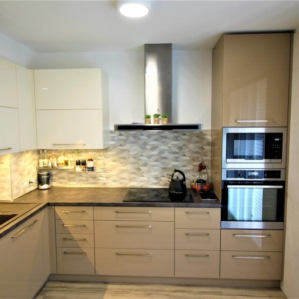 Lesklá kuchyňská linka Slonová kost + Cappucino