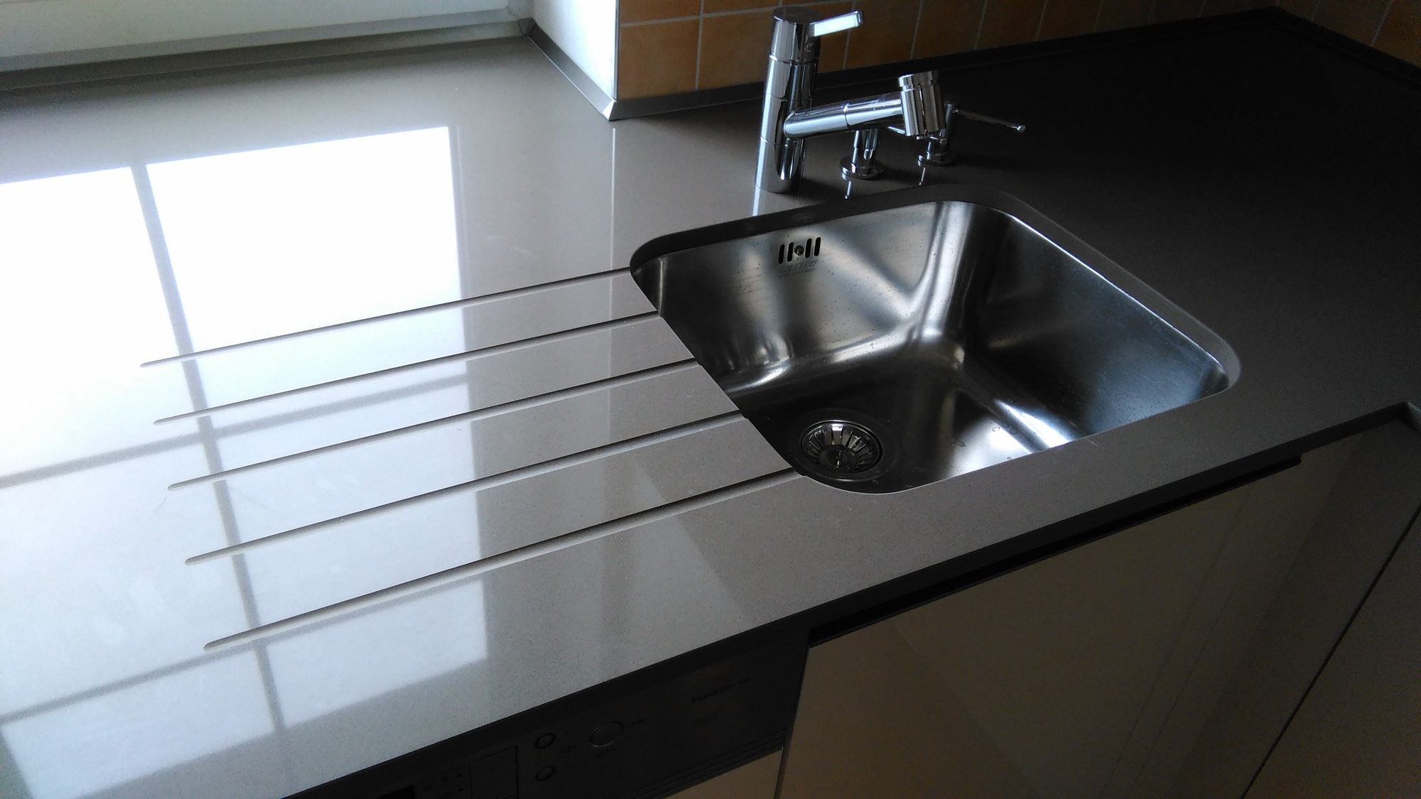 Lesklá kuchyň s pracovní deskou Technistone